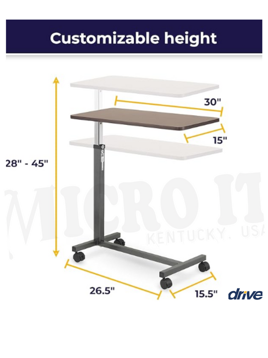 DRIVE MEDICAL TABLE 13067 / OVERBED WITH WHEELS / ADJUSTABLE